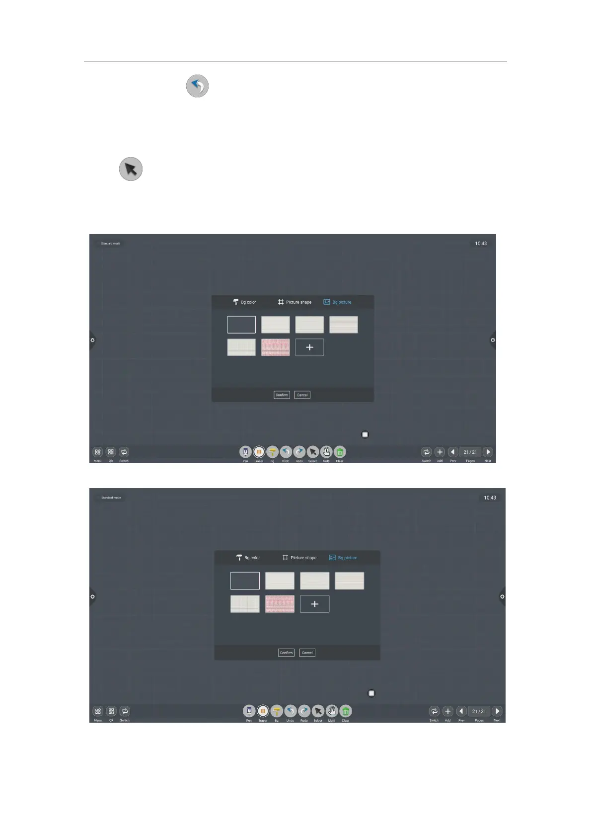 mode to the selection mode, and the handwriting and shape in the interface can be