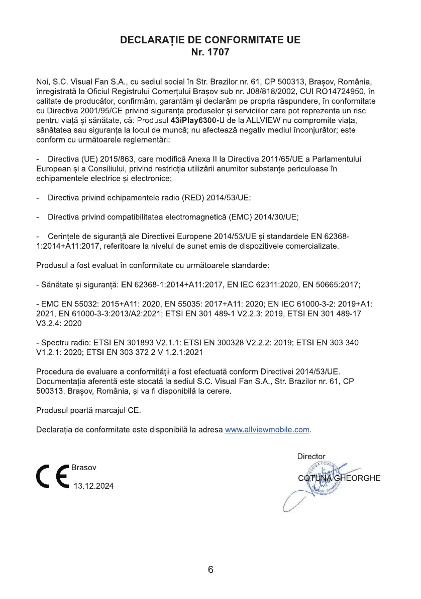 Bekijk gratis de handleiding van Allview 43iPlay6300-U, stel vragen en lees de antwoorden op veelvoorkomende problemen, of gebruik onze assistent om sneller informatie in de handleiding te vinden of uitleg te krijgen over specifieke functies.