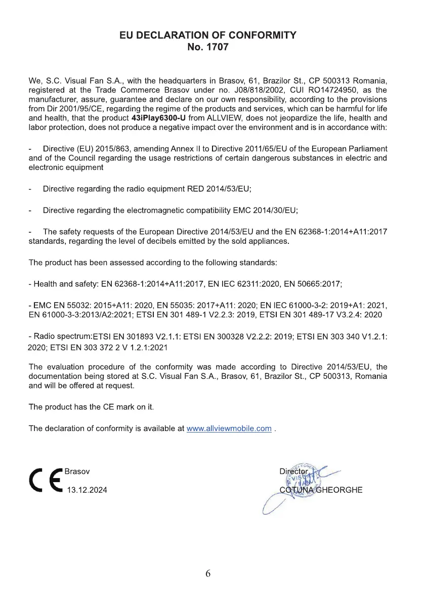Bekijk gratis de handleiding van Allview 43iPlay6300-U, stel vragen en lees de antwoorden op veelvoorkomende problemen, of gebruik onze assistent om sneller informatie in de handleiding te vinden of uitleg te krijgen over specifieke functies.