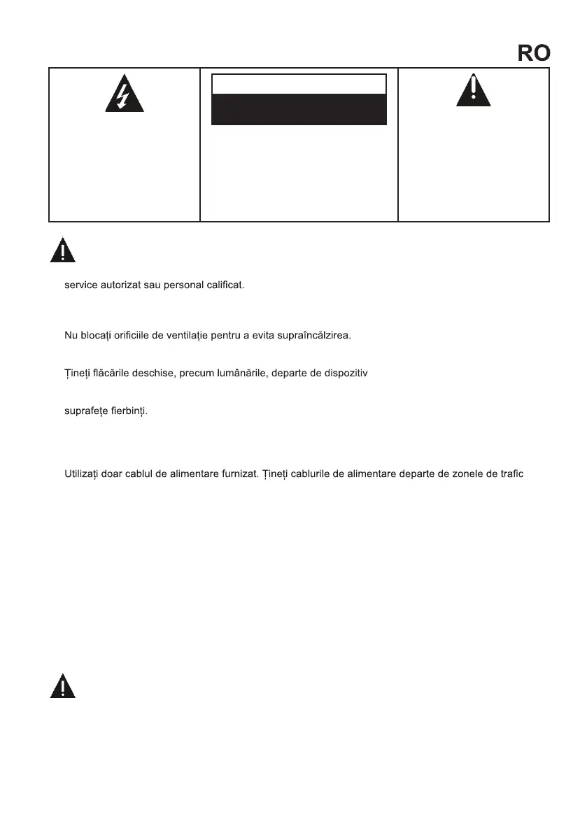 AVERTISMENT – PENTRU A REDUCE RISCUL DE INCENDIU, ȘOC ELECTRIC SAU