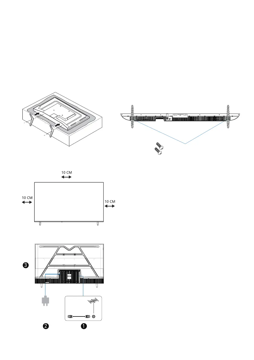 3. Saskaņojiet statīva skrūvju caurumus ar tiem, kas atrodas televizorā, pēc tam ievietojiet un pievelciet