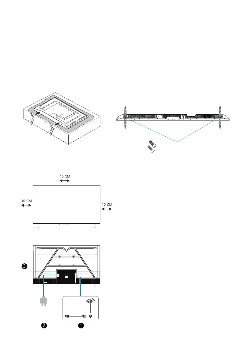 Aliniați oriciile pentru șuruburi ale bazei cu cele de pe televizor, apoi introduceți și strângeți