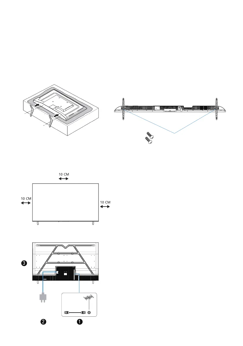 3. Joondage aluse kruviaugud teleri omadega, seejärel sisestage ja pingutage kruvid.