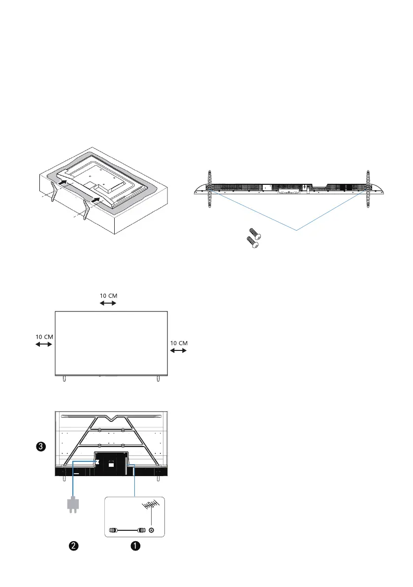 3. Suderinkite pagrindo varžtų skyles su televizoriaus skylėmis, tada įdėkite ir tvirtai priveržkite varžtus.