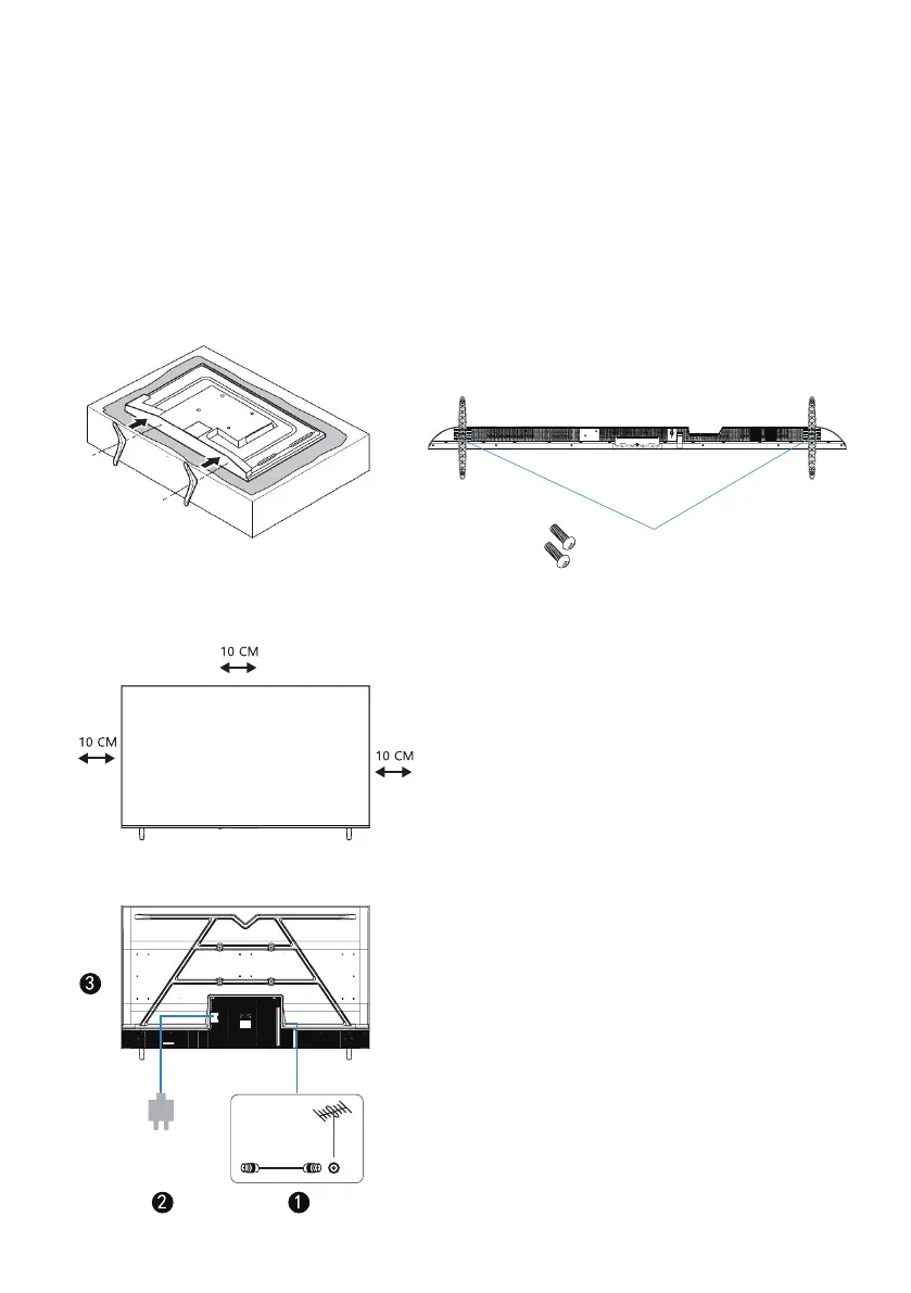 3. Saskaņojiet statīva skrūvju caurumus ar tiem, kas atrodas televizorā, pēc tam ievietojiet un pievelciet