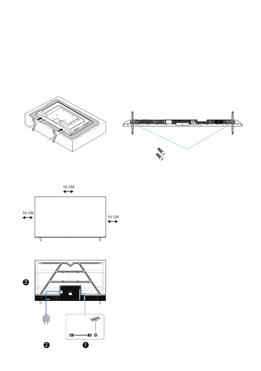 3. Wyrównaj otwory na śruby w podstawie z otworami w telewizorze, następnie włóż śruby i dokręć je.