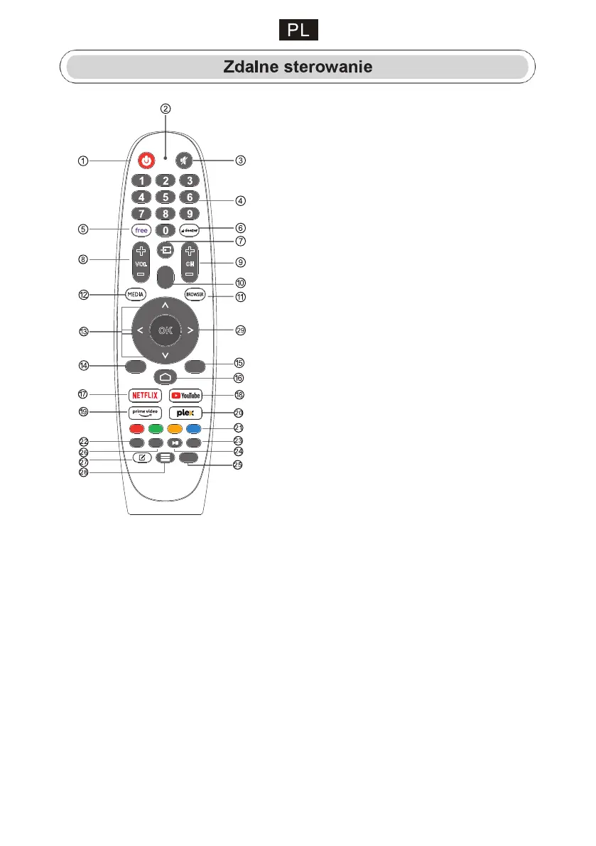 21. KOLOROWE PRZYCISKI: Przyciski z powiązanymi funkcjami w EPG.