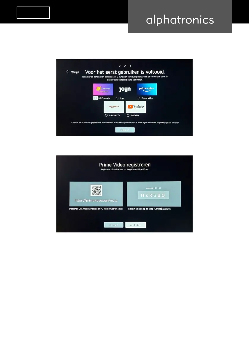 wanneer de TV wordt geleverd. Selecteer hiervoor de gewenste apps en druk op [Klaar]. Voor Amazon Prime Video,