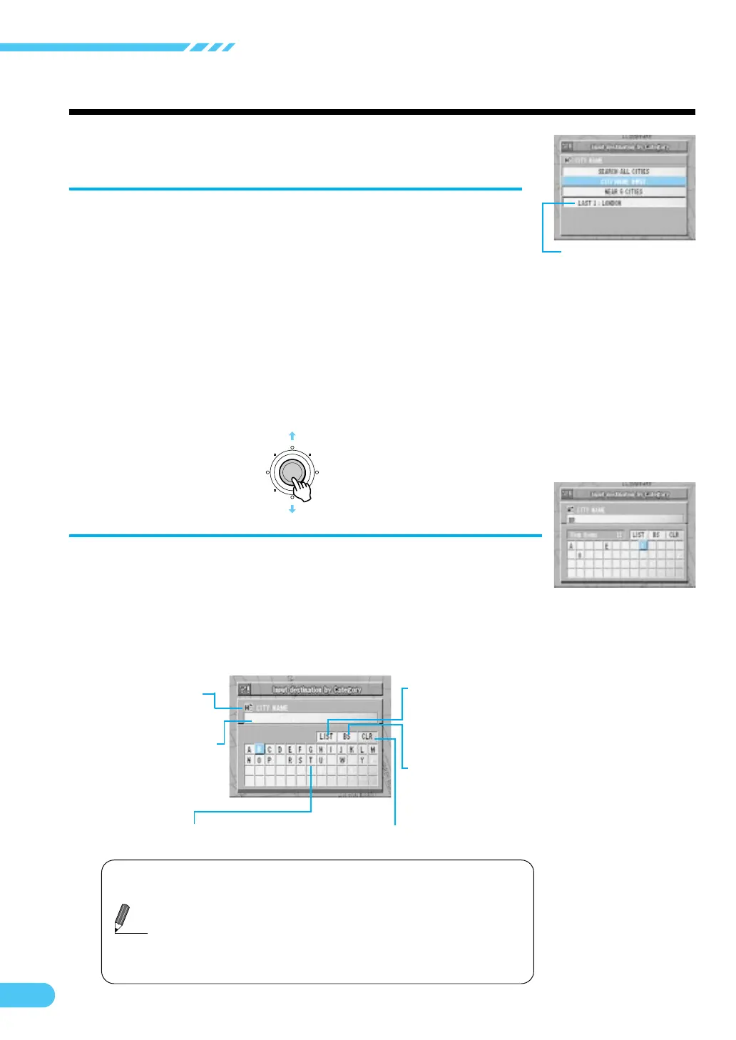 • When "CITY NAME INPUT" is selected, proceed to Step 5.