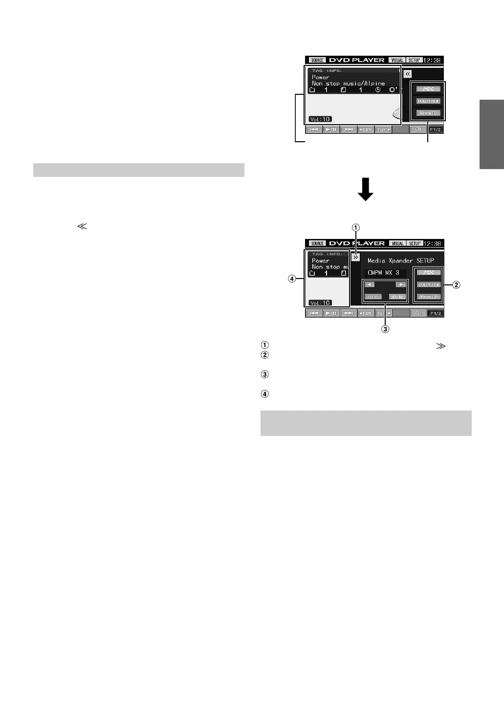 In the main source display, shortcuts for set up of Media Xpander, Bass
