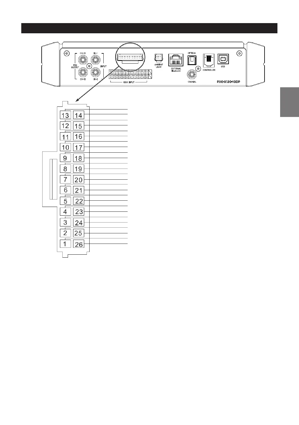 23 Weiss 22 AWG ........................... Hochpegeleingang Kanal 10+