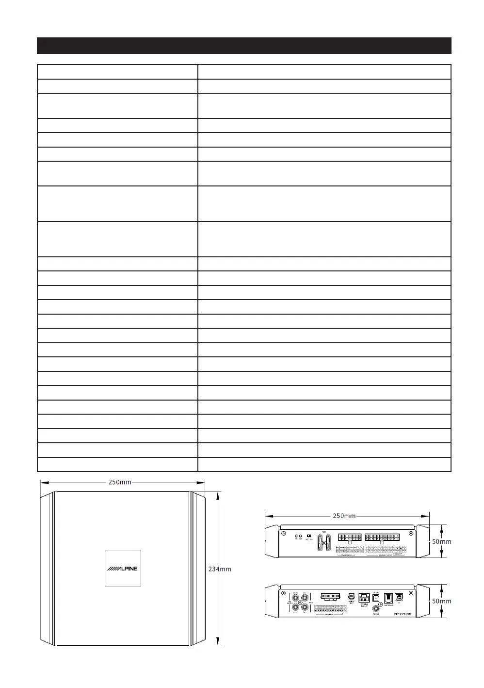 CH9~CH10: 2CH x 100W (4Ω, 14,4V, 1kHz, 10%THD),