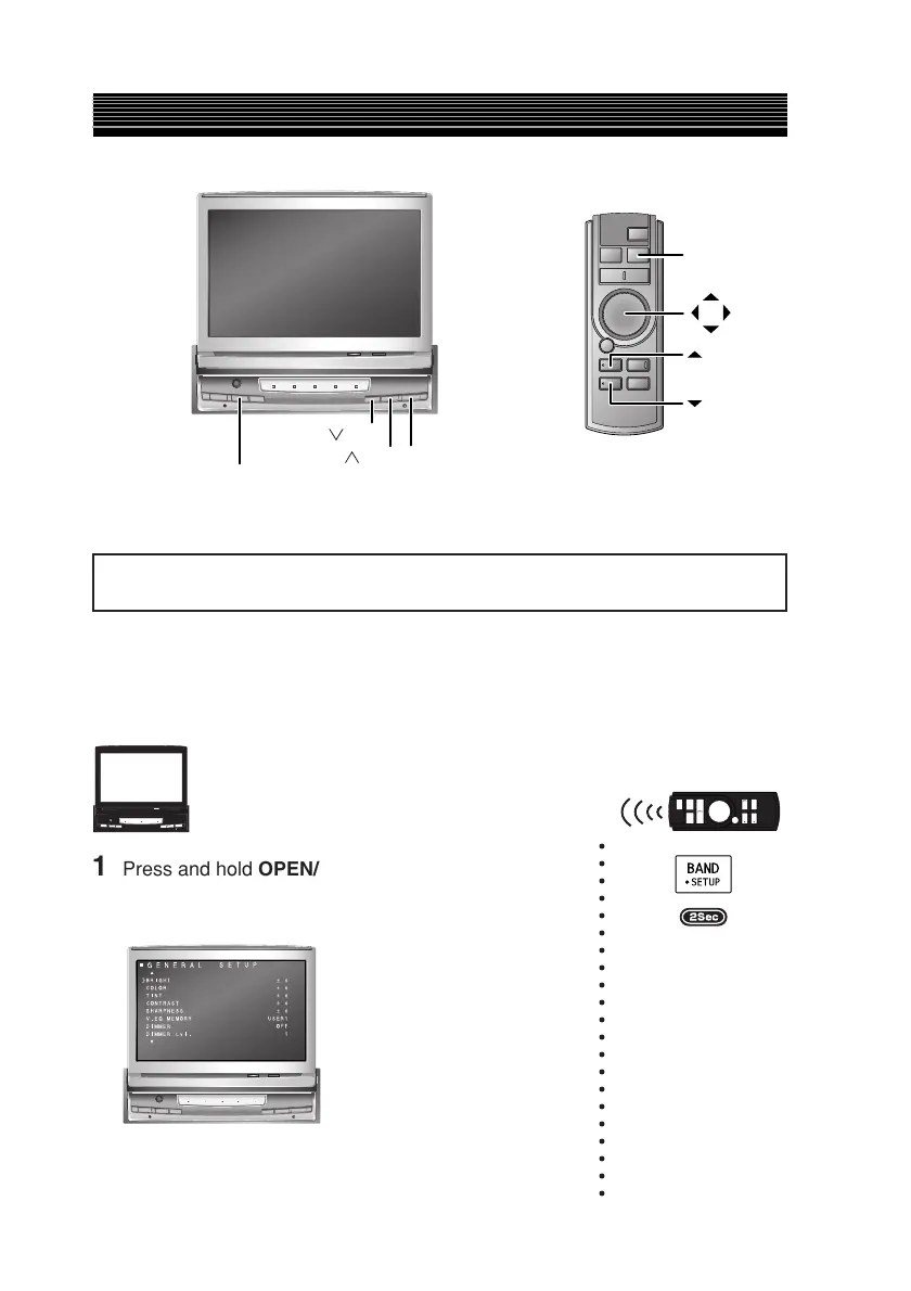 1 Press and hold OPEN/CLOSE / SETUP for at least 2