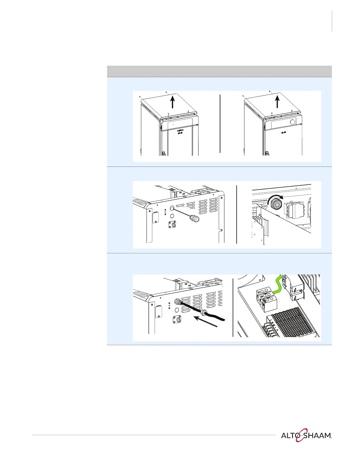 3. Install the cord through the cord grip. Route the ground wire to the terminal
