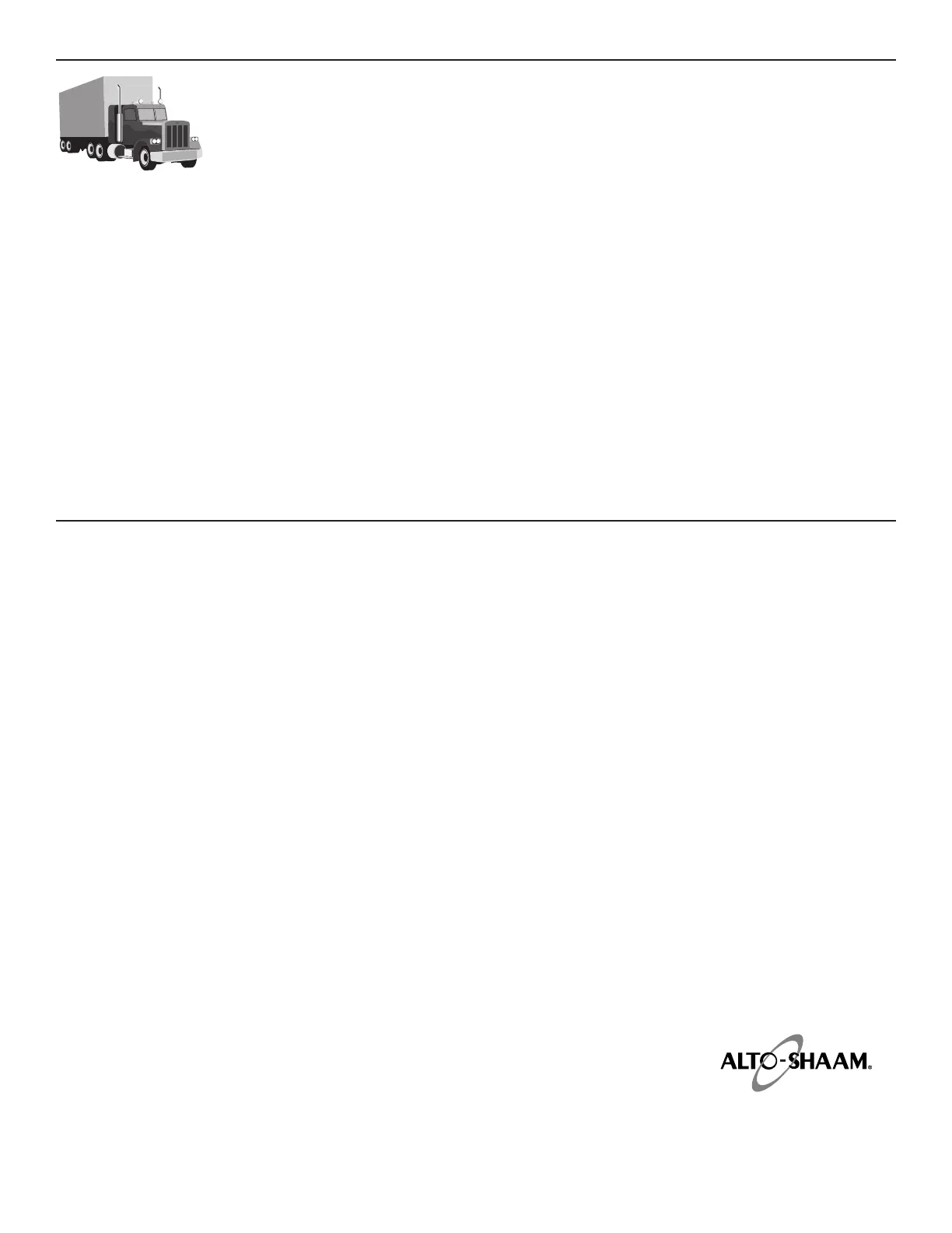 All Alto-Shaam equipment is sold F.O.B. shipping point, and when accepted by the carrier, such shipments