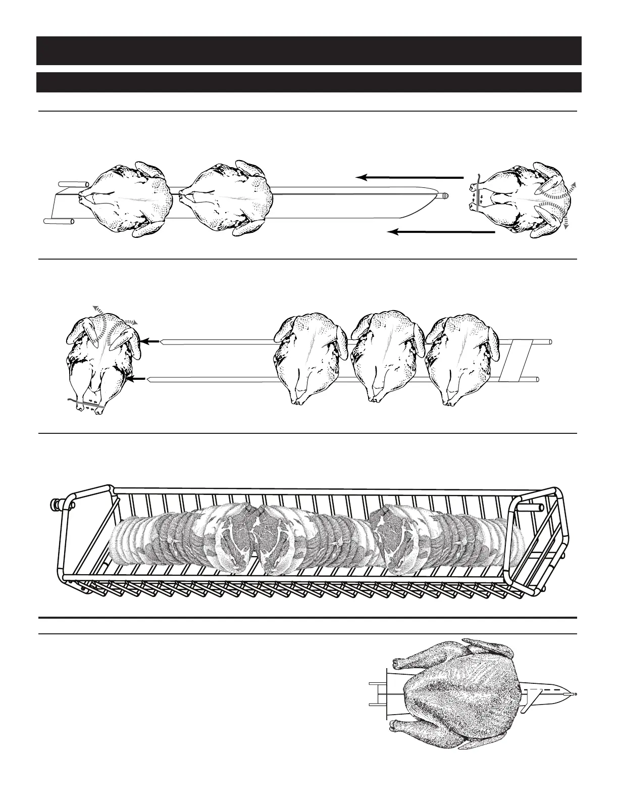 position. Load up to 1, 25 lb (11,4 kg) turkey per spit. Use up to