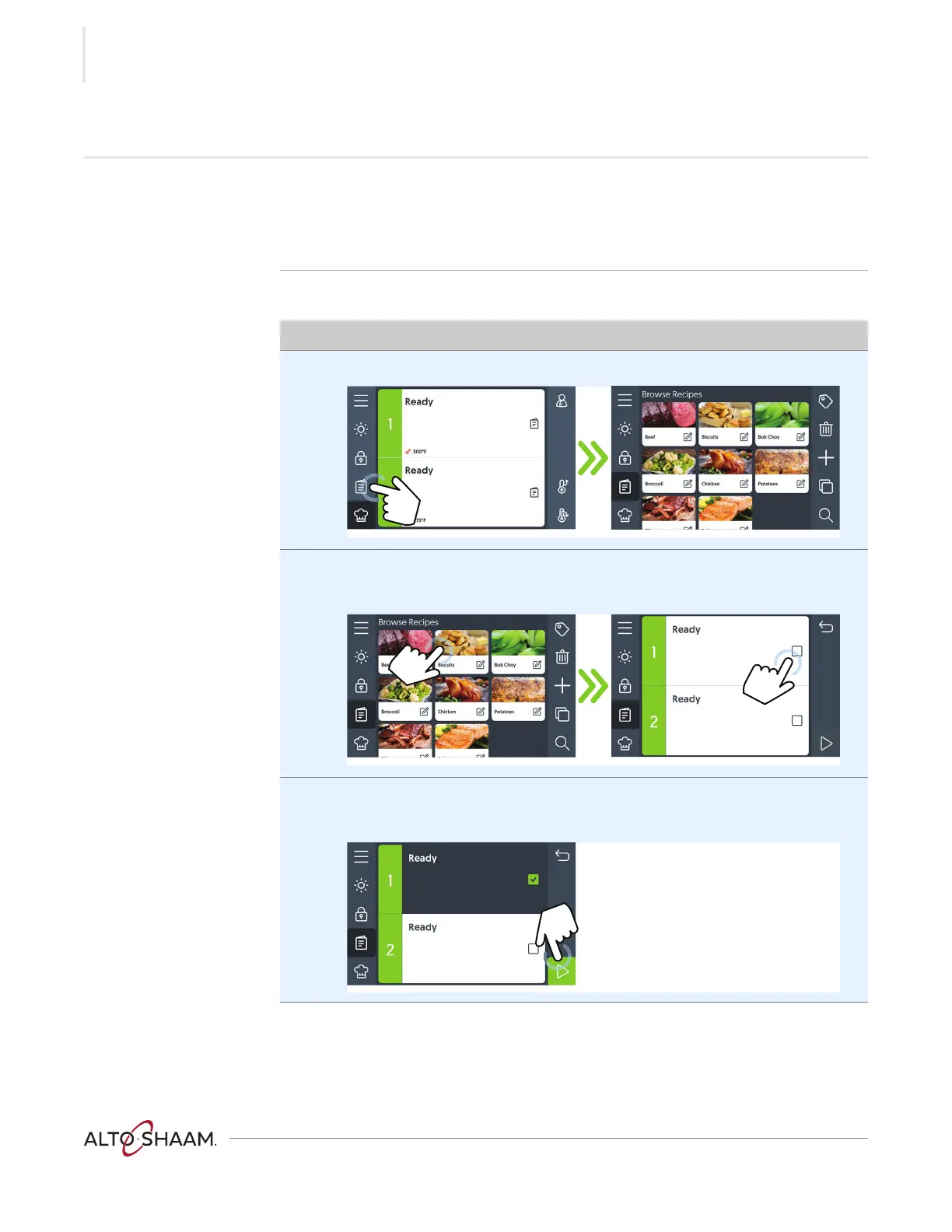 1. Touch the recipes icon /. The “Browse Recipes” screen displays.