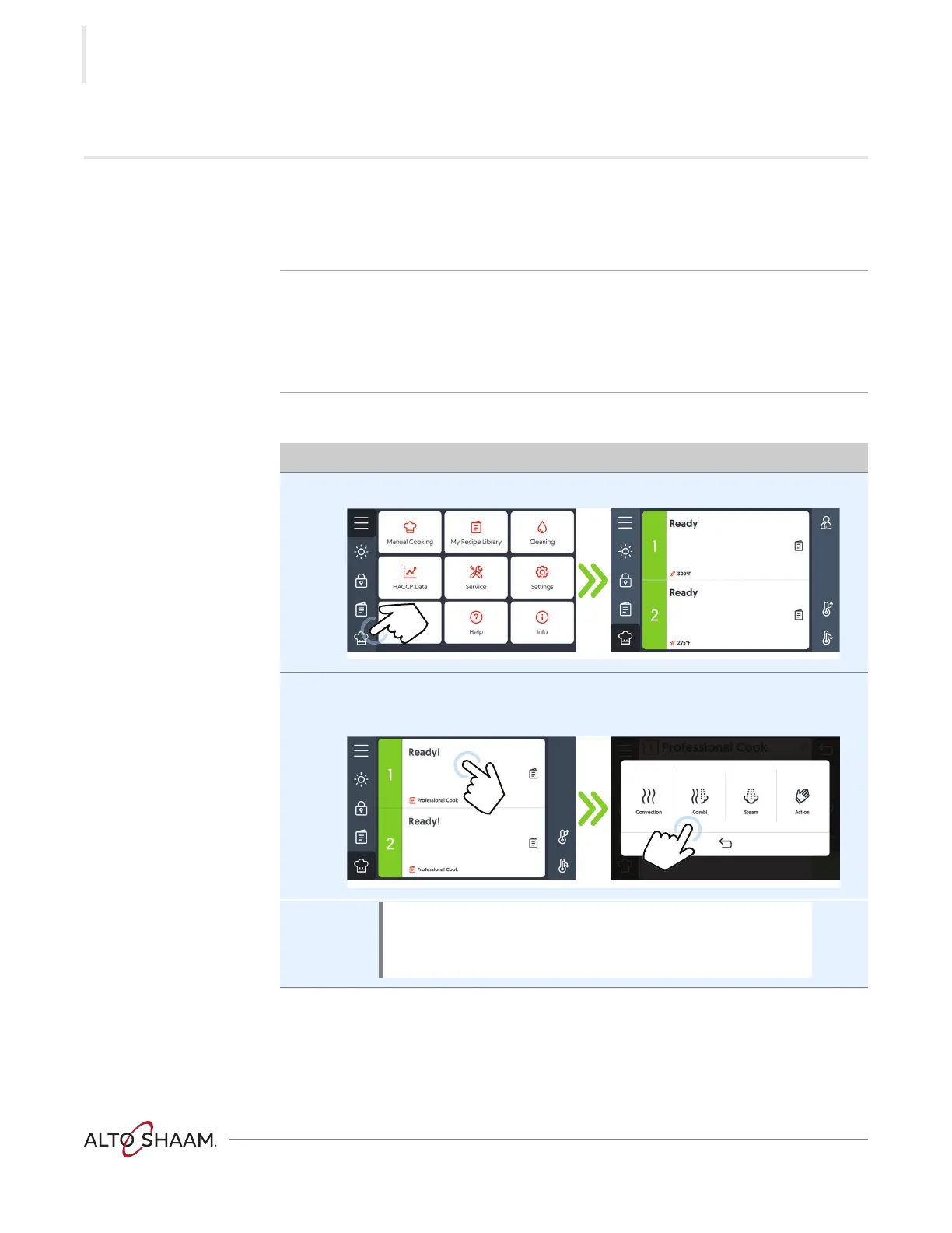 Touch a cooking mode or an action step icon 1 to choose the step type.
