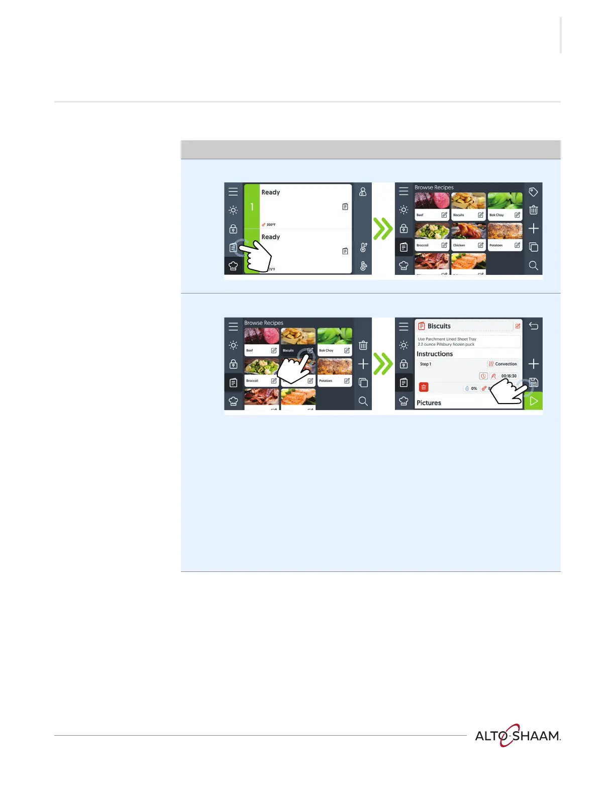 1. Touch the recipes icon /. The “Browse Recipes” screen displays.
