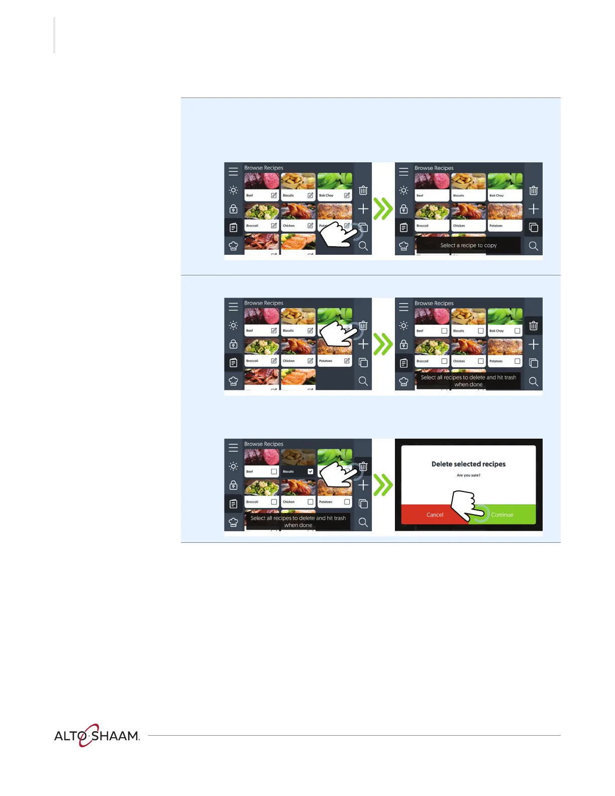 Touch “Continue” to confirm that you want to delete the recipe(s).