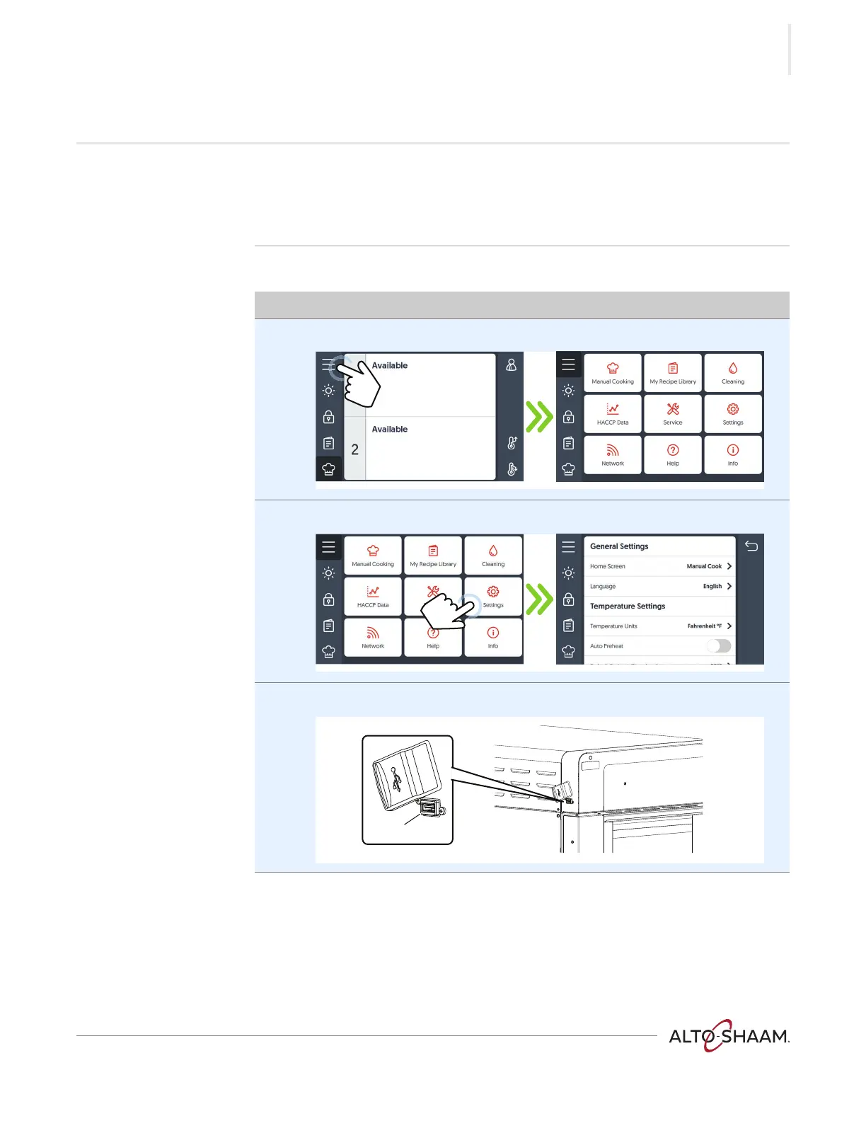 Procedure To load recipes from the USB drive to the oven, do the following.