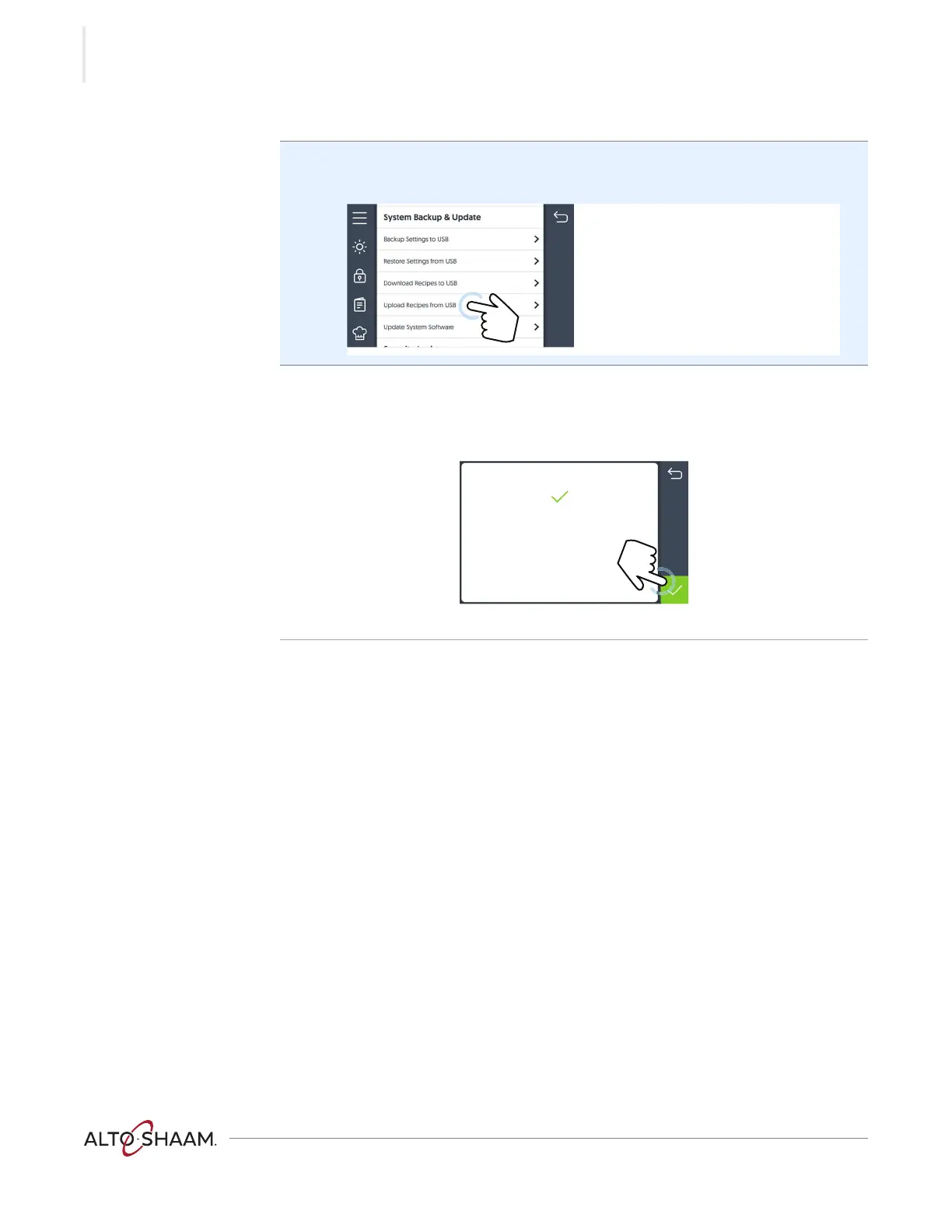Touch the “Upload recipes from USB” 2 setting.