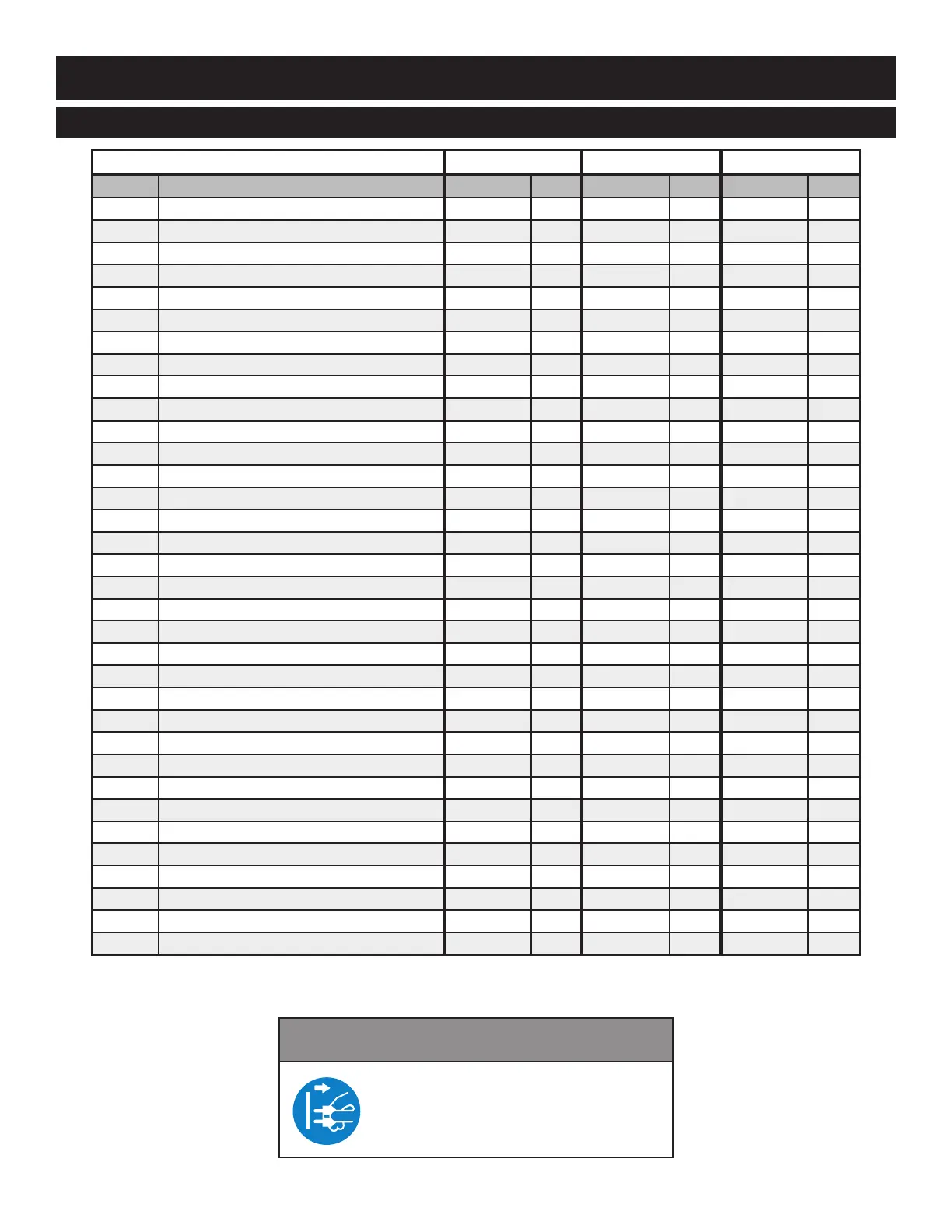ITEM DESCRIPTION PART NO. QTY PART NO. QTY PART NO. QTY