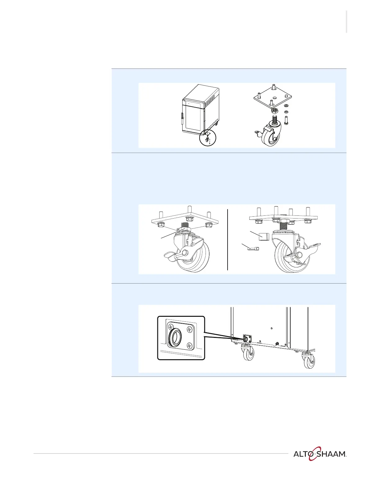 5. Level the unit as necessary. To do so, screw the wheel up or down until the
