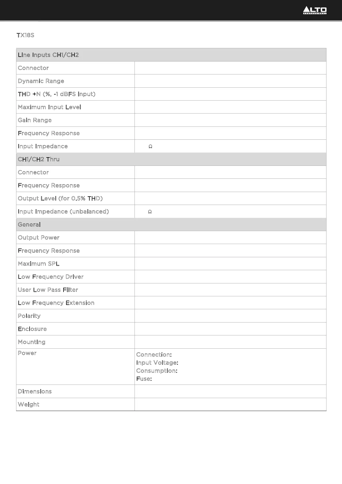 Bekijk gratis de handleiding van Alto TX12S, stel vragen en lees de antwoorden op veelvoorkomende problemen, of gebruik onze assistent om sneller informatie in de handleiding te vinden of uitleg te krijgen over specifieke functies.