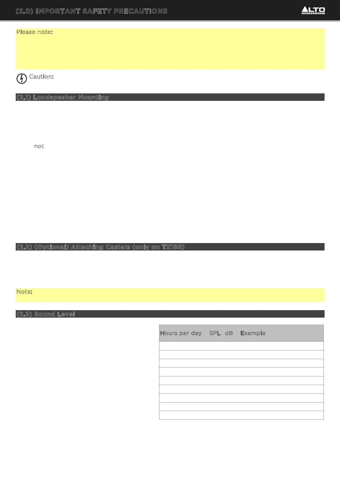 and use casters, you are responsible for the safe and proper installation. Alto Professional and inMusic take