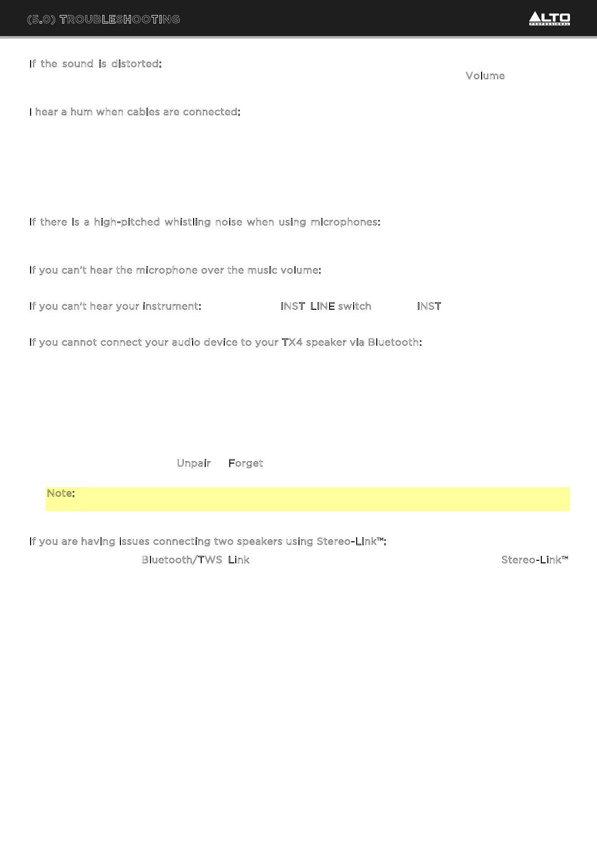 luetooth/TWS Link button to unlink the speakers, and restart the Stereo-Link™