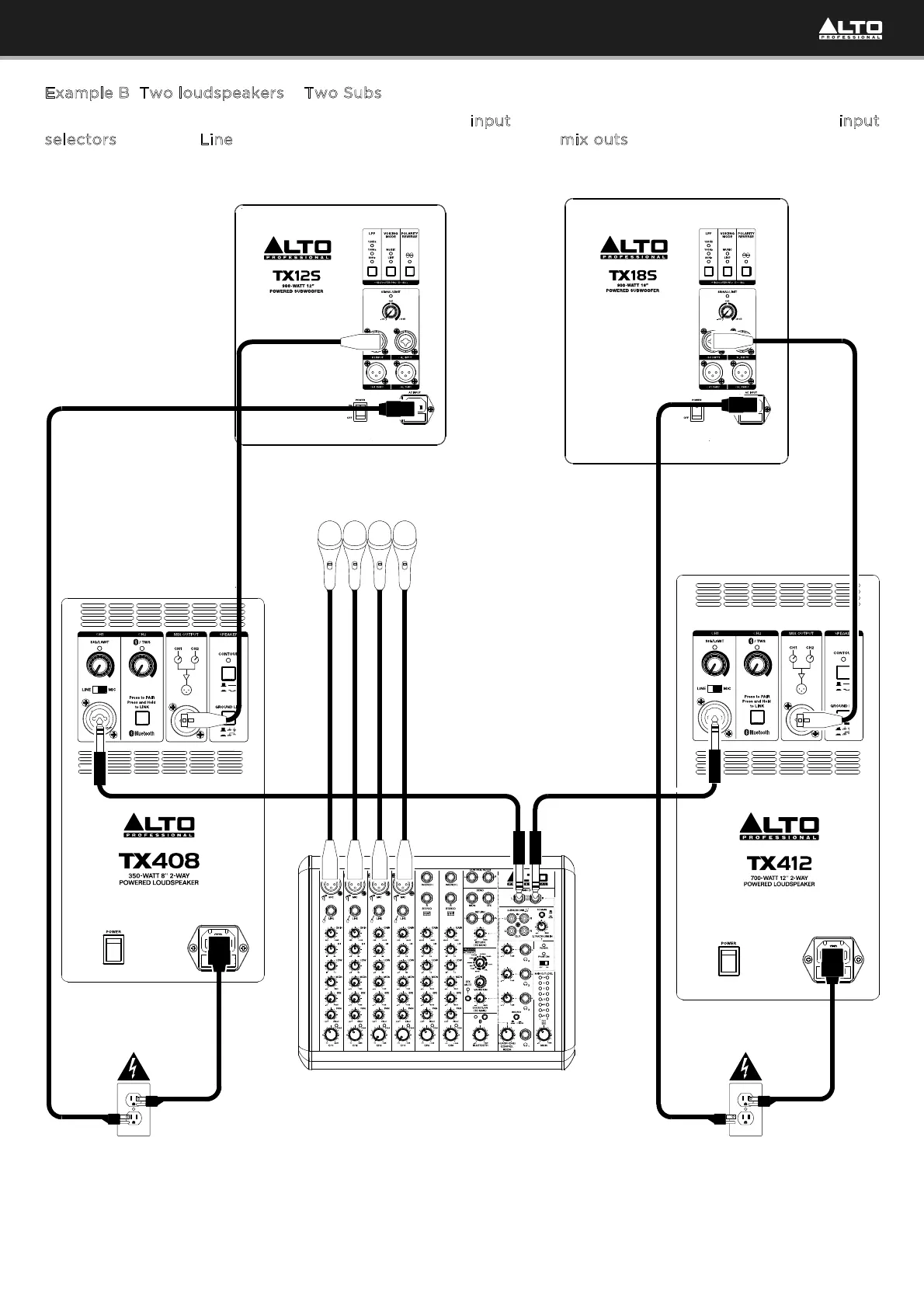 electors are set to Line. Connect each of your TX4 loudspeakers’ mix outs to the inputs of your subs.