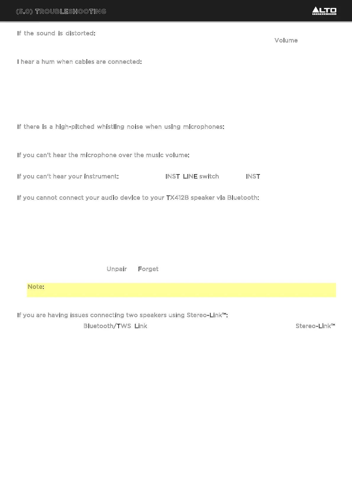Bekijk gratis de handleiding van Alto TX412B, stel vragen en lees de antwoorden op veelvoorkomende problemen, of gebruik onze assistent om sneller informatie in de handleiding te vinden of uitleg te krijgen over specifieke functies.