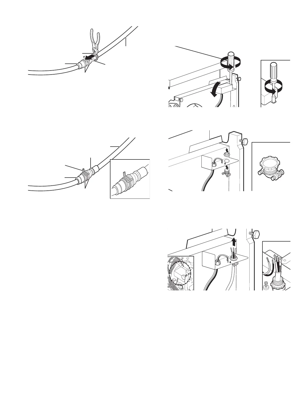 Using pliers, squeeze open the small drain hose clamp, and
