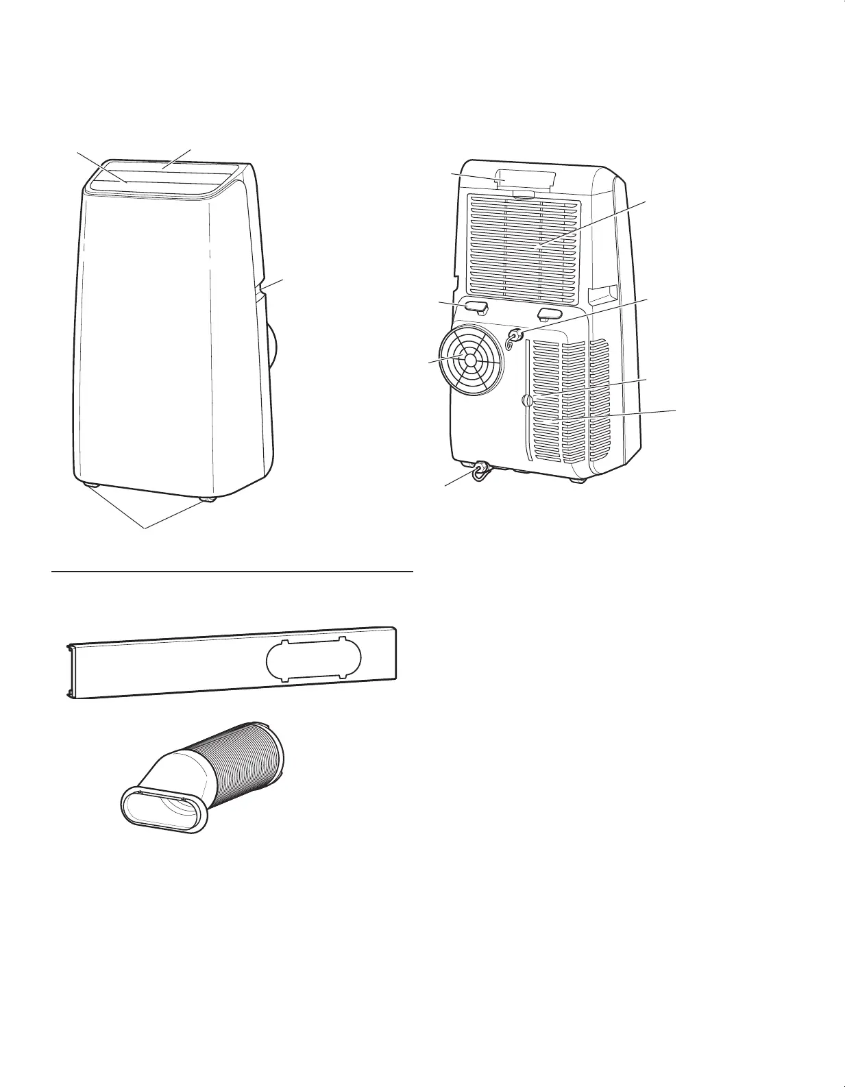 A. Window insert panel (1) B. Flexible vent hose