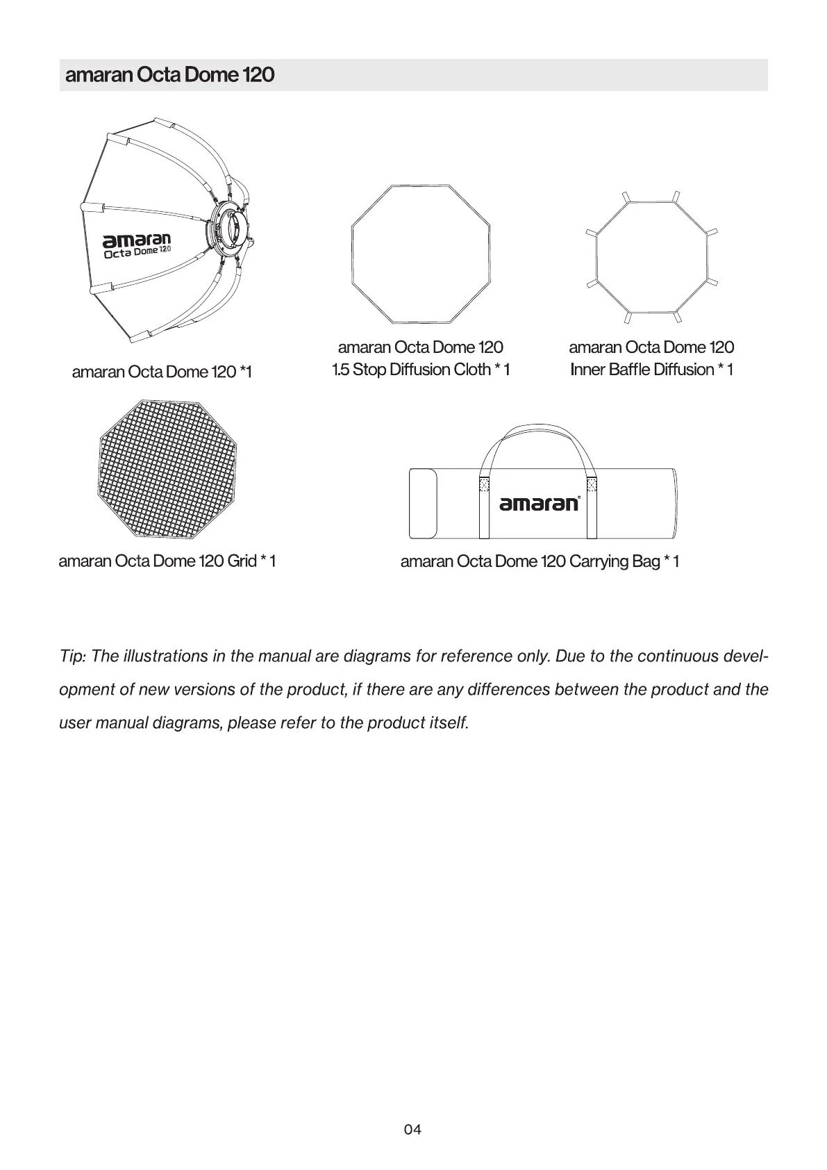Bekijk gratis de handleiding van Amaran Octa Dome 90, stel vragen en lees de antwoorden op veelvoorkomende problemen, of gebruik onze assistent om sneller informatie in de handleiding te vinden of uitleg te krijgen over specifieke functies.