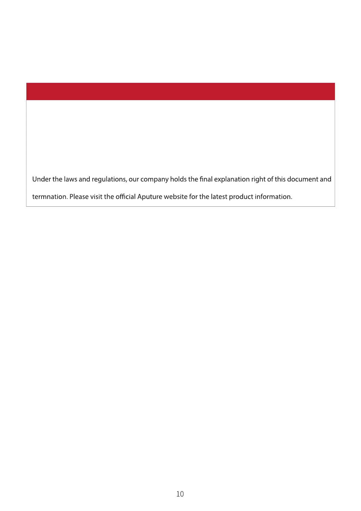 own behaviors and all consequences thereof. Aputure shall not be liable for any loss due to the user