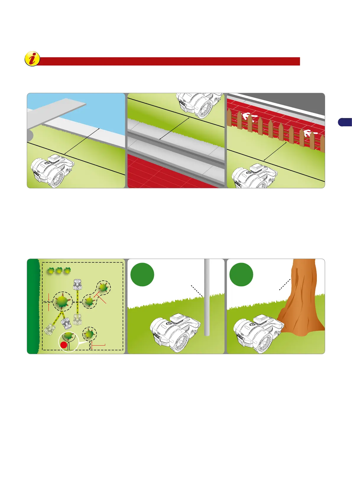 optimale installatie en een goede werking van de robot. Bij hellingen of gladde terreinen, dient men de afstand te