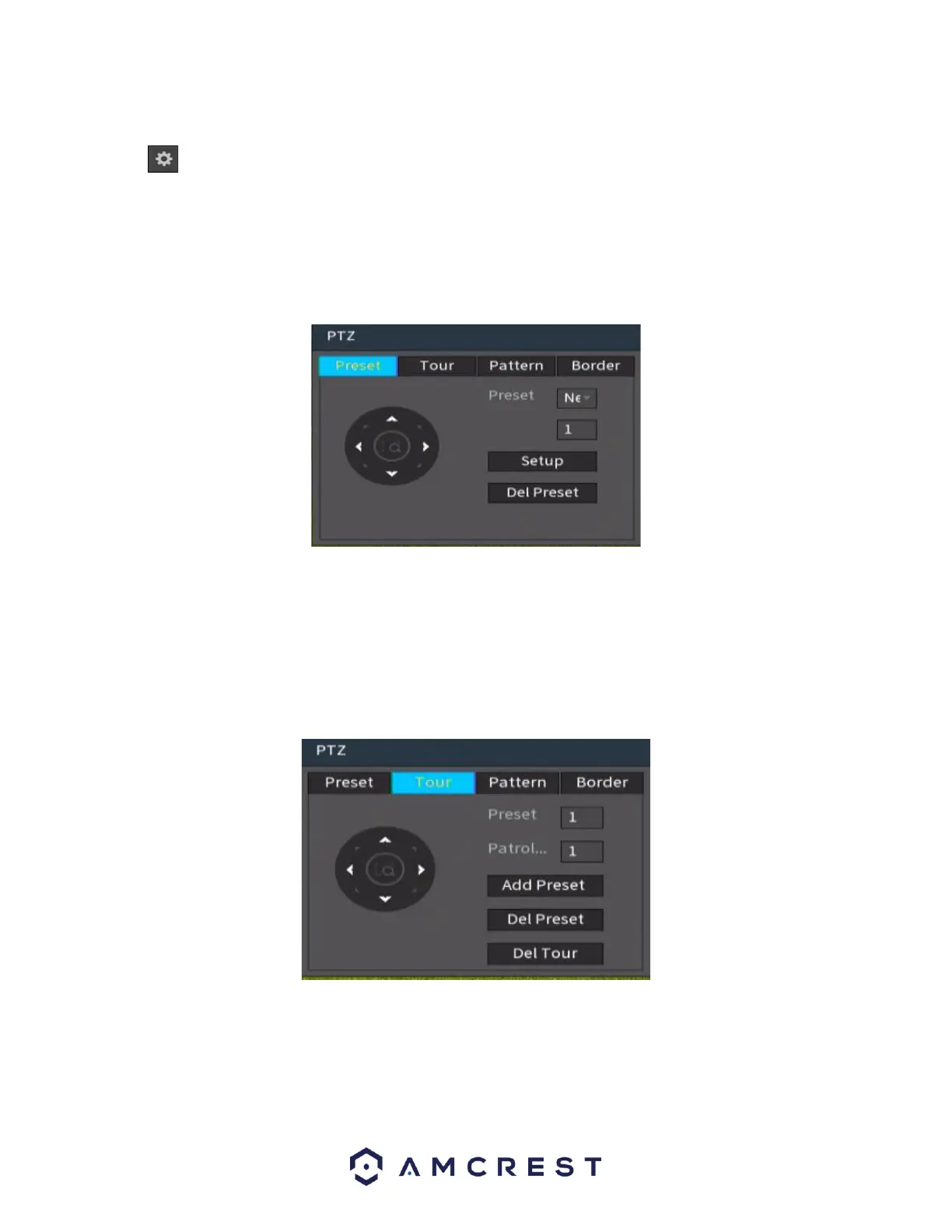 Click the Tour tab. Input tour value and preset No. Click the Add preset button to add the current preset