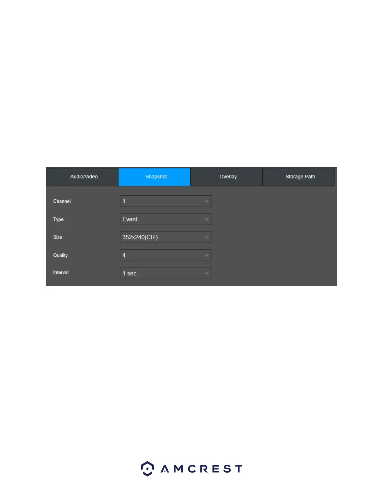 This tab allows for the selection of snapshot settings. See below for a screenshot of the Snapshot tab: