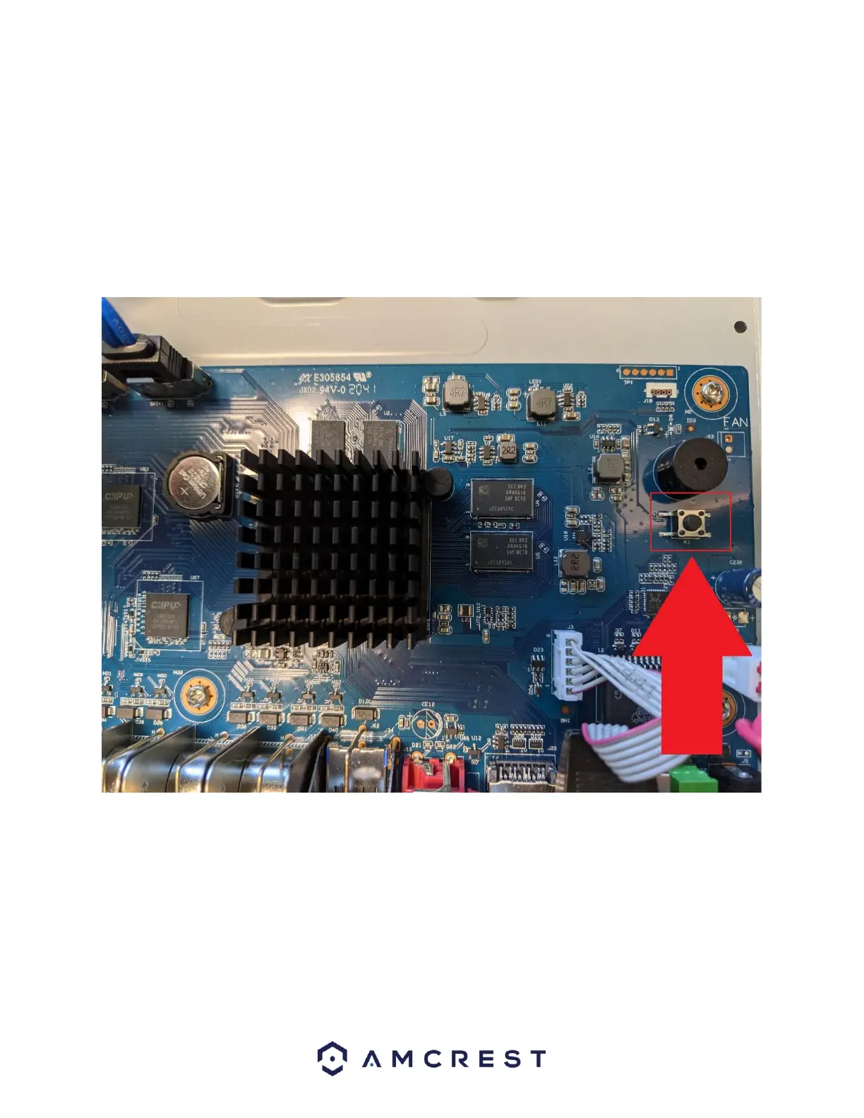 On the motherboard you will notice a small black button. This is the factory reset switch for your DVR: