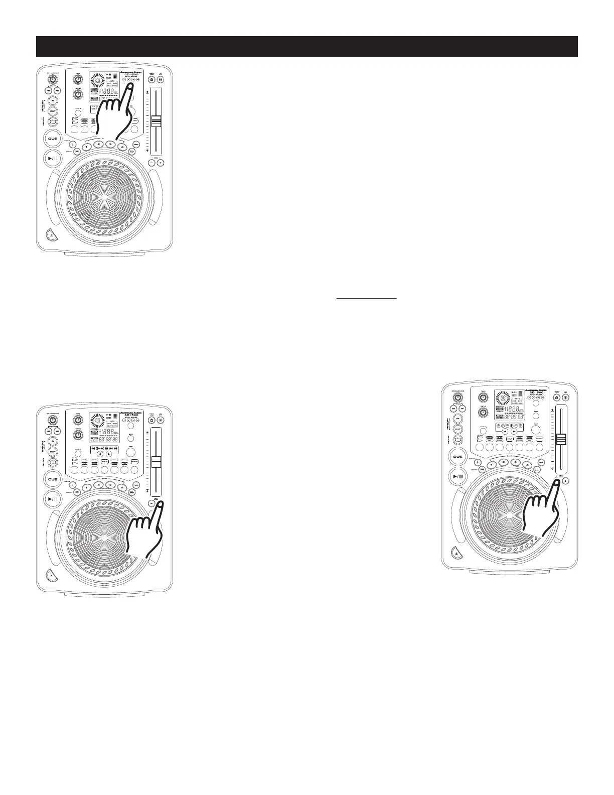 The (+) PITCH BEND BUTTON (11) will increase track playback speed and the (-) PITCH BEND BUTTON (11)