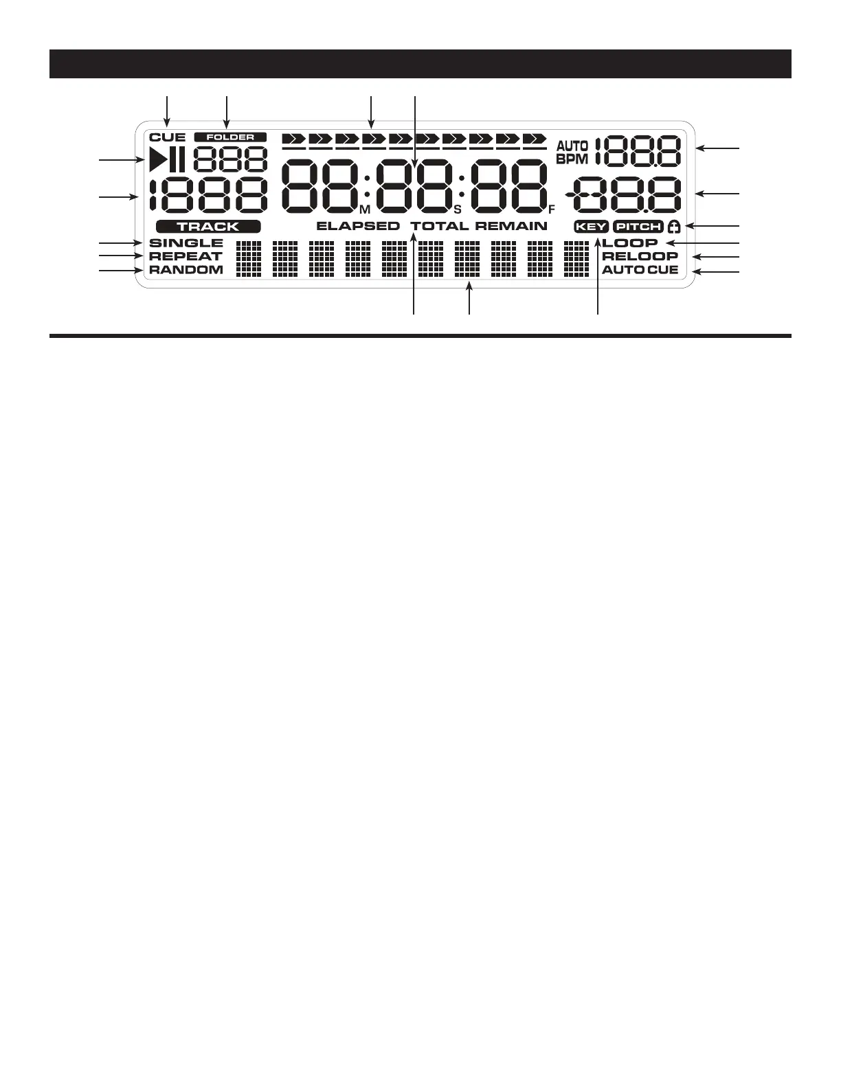 50. AUTO CUE - This will indicate if the Auto Cue is on or off. Press and hold the SGL/CTN (4) for 1 sec. to turn the Auto