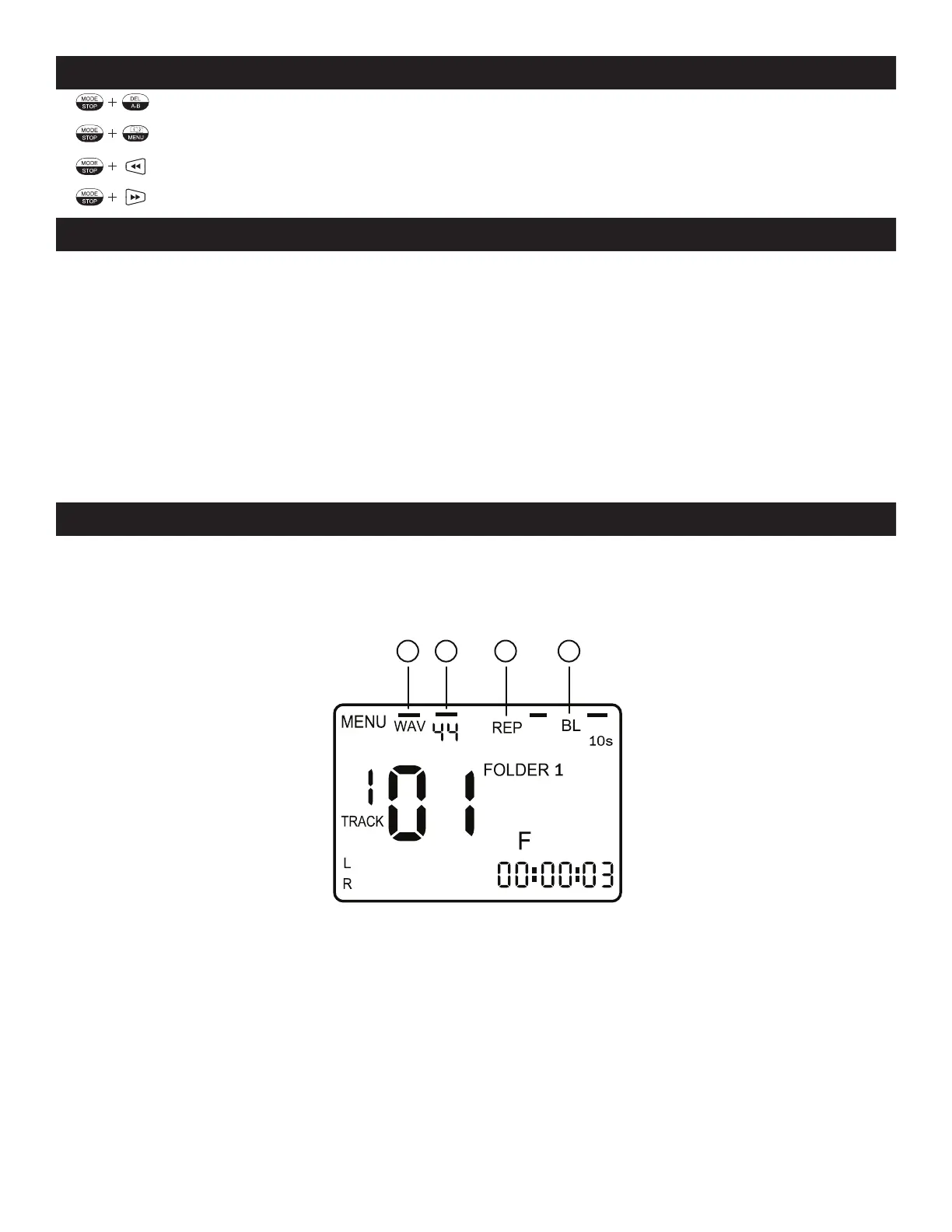 3. ReP(RePeaT) - There are two repeat functions: REPEAT (the track will only be repeated) or REP
