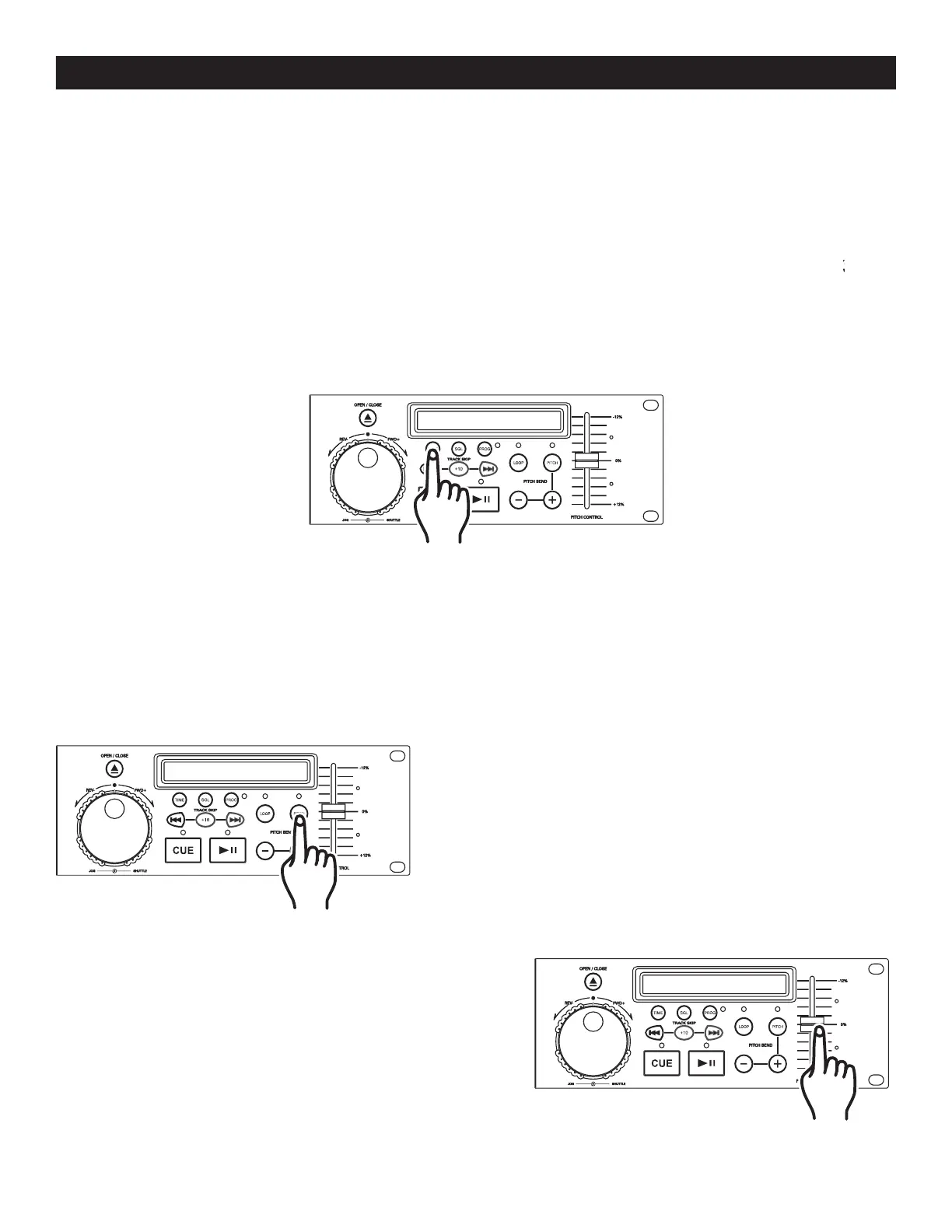 This function will increase or decrease the playback speed or "PITCH," of a track. The maximum pitch bend