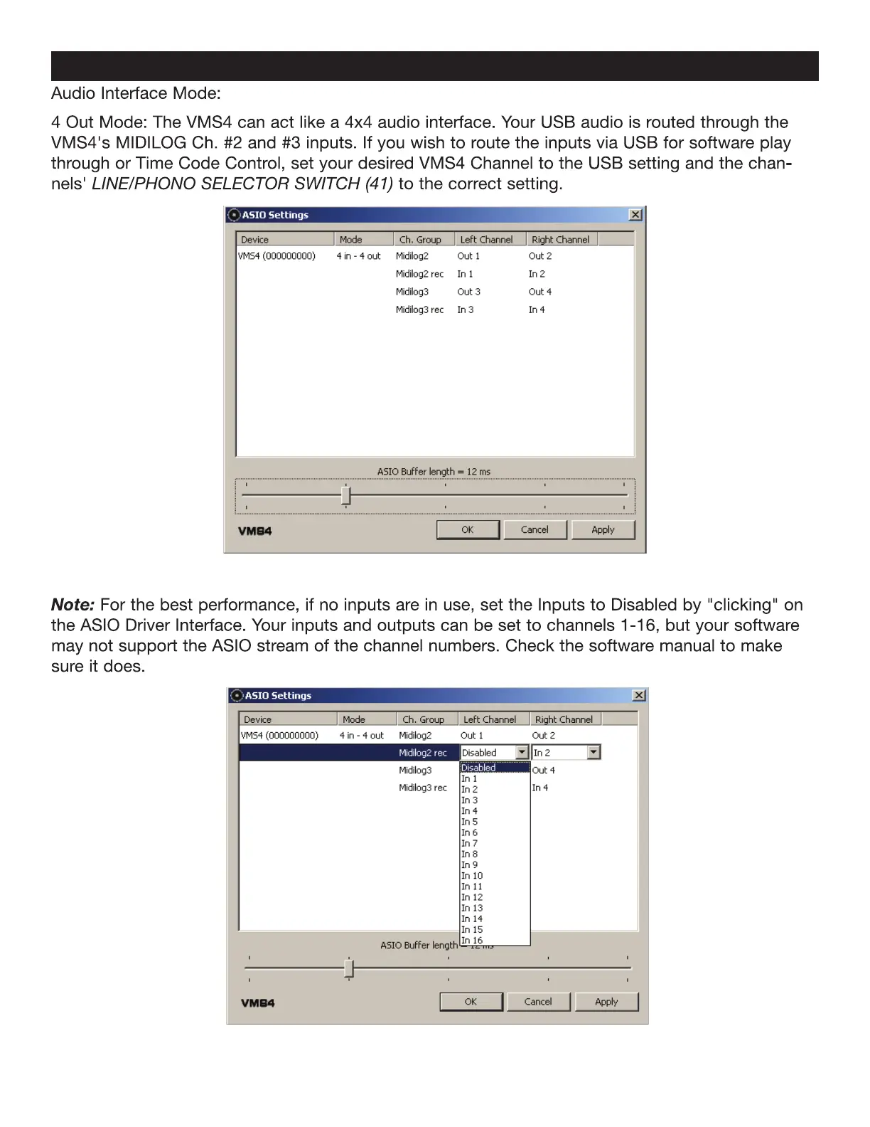 4 Out Mode: The VMS4 can act like a 4x4 audio interface. Your USB audio is routed through the