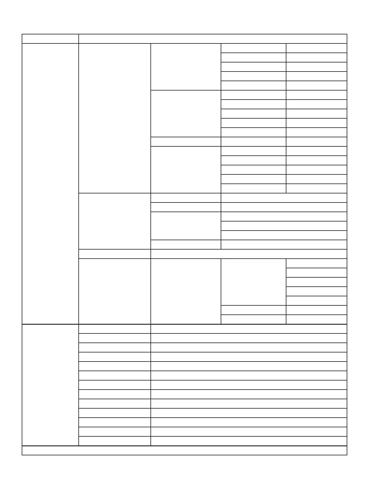 MAIN MENU OPTIONS/VALUES (default values in bold)