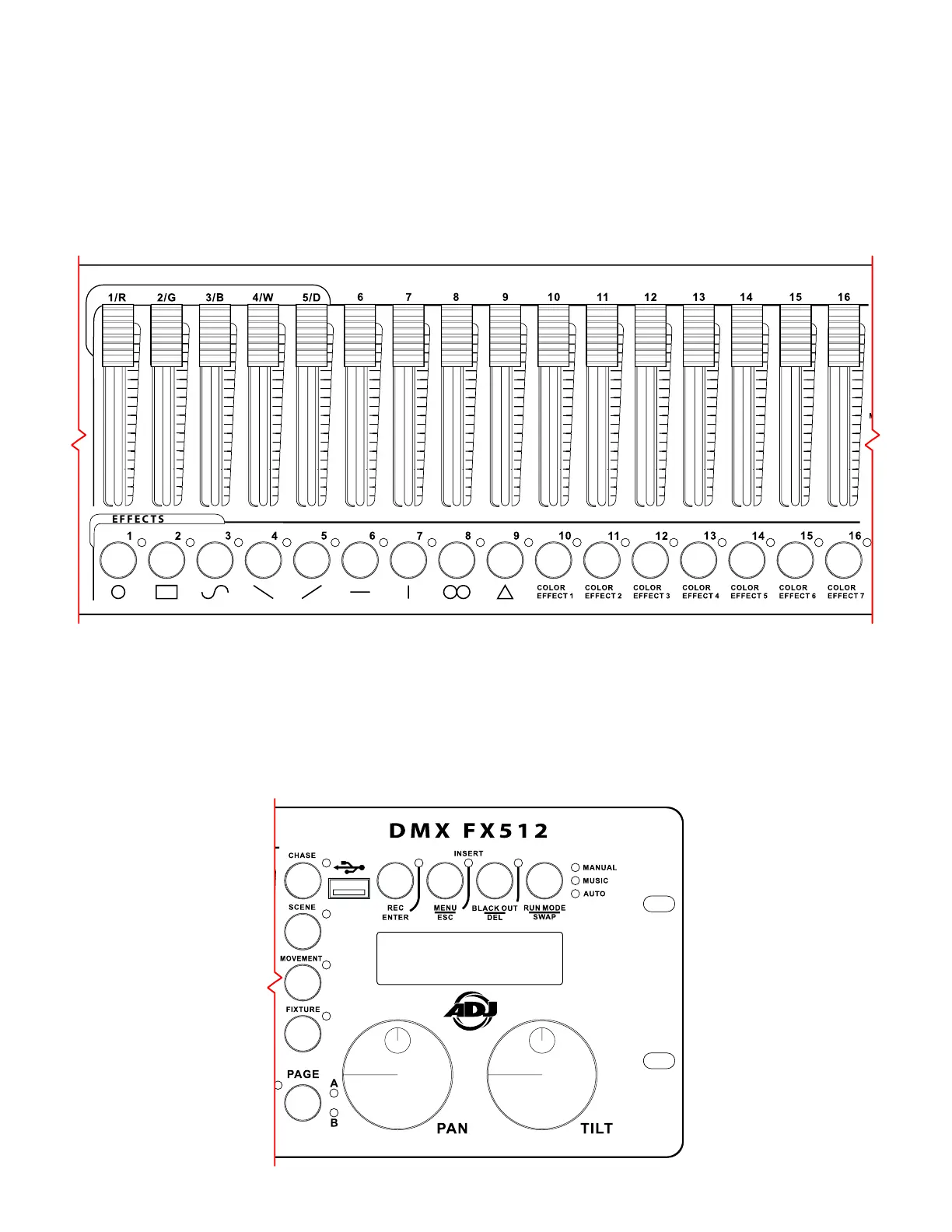 • In CHASE mode, the PAN/TILT wheels adjust the chase speed and time respectively.