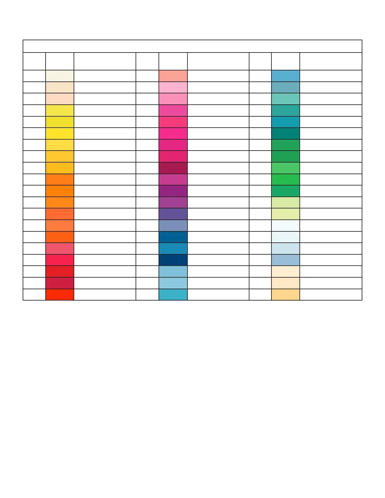 1 7 Pale Yellow 21 157 Pink 41 68 Sky Blue