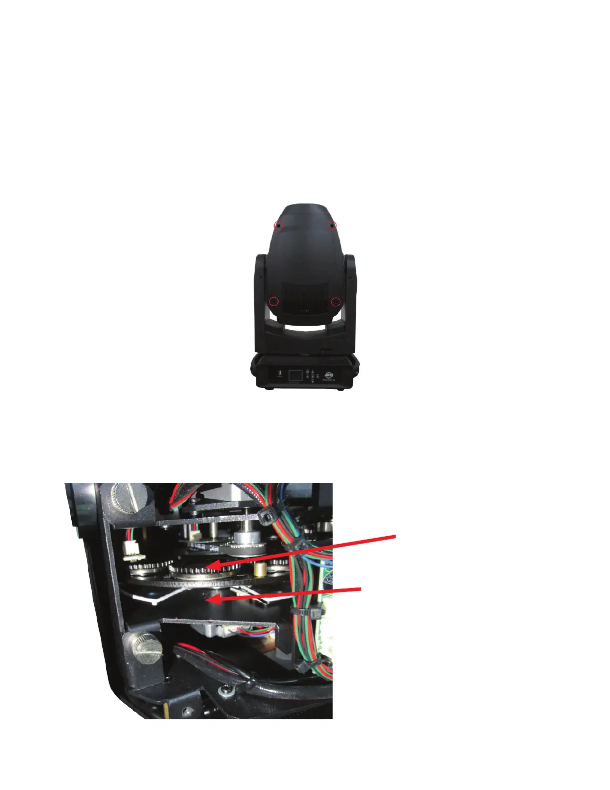 2. Locate the gobo wheels and color wheels. They are positioned near the second large silver